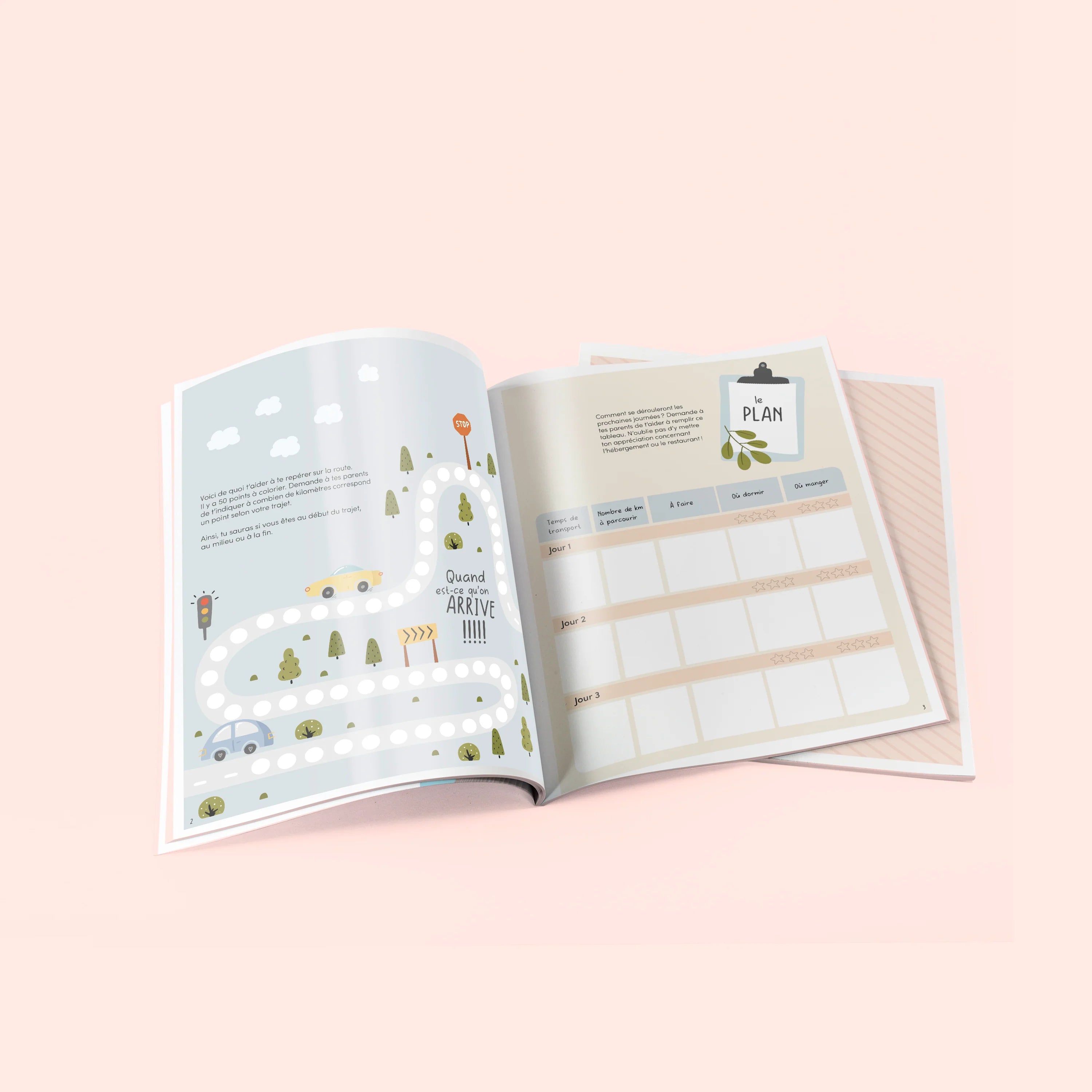 Il n’est pas question de partir sur la route pour une longue distance sans préparer quoique ce soit pour occuper les enfants, et c’est pour cette raison que nous avons créé un journal de voyage spécialement pensé pour eux, où ils trouveront tout le nécessaire pour que le voyage soit agréable et passe rapidement.